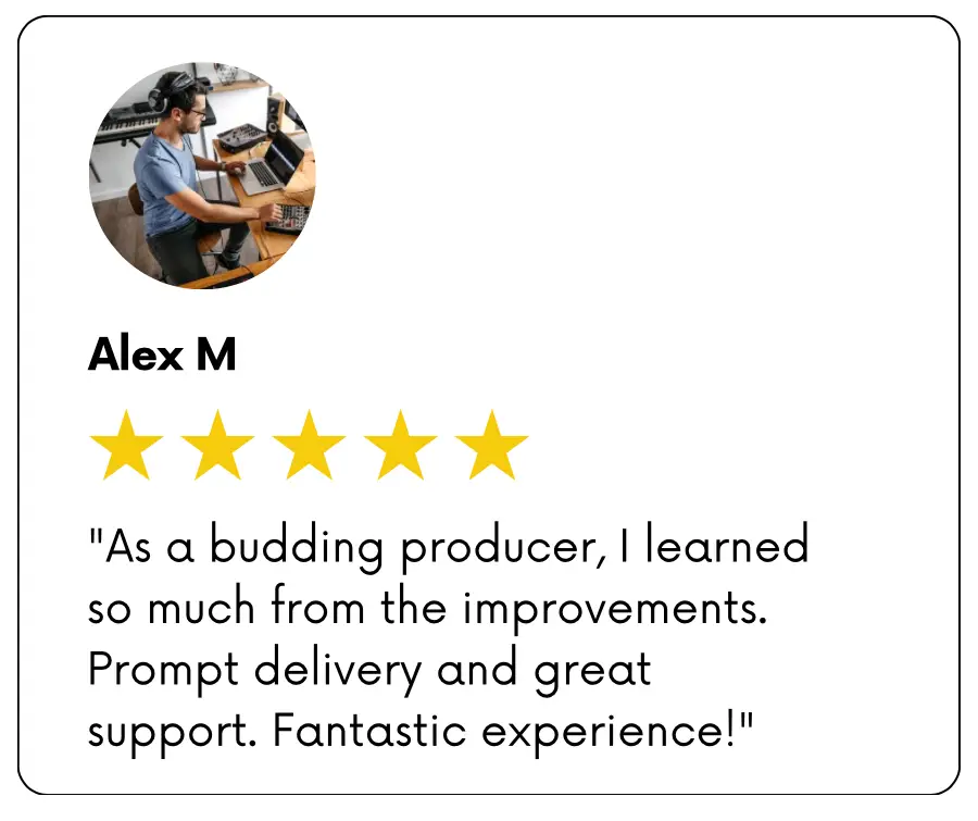 The Gold level of our rework service offers an enhanced experience for your project. We will work directly within your project file to make significant improvements, ensuring that the final product exceeds your expectations. This package includes better support with direct chat access, allowing for real-time communication. You will also receive two revisions to ensure complete satisfaction, and we offer full composition services to elevate your project further. We support plugins like Sylenth, Massive, Spire, Serum, and WAVES.